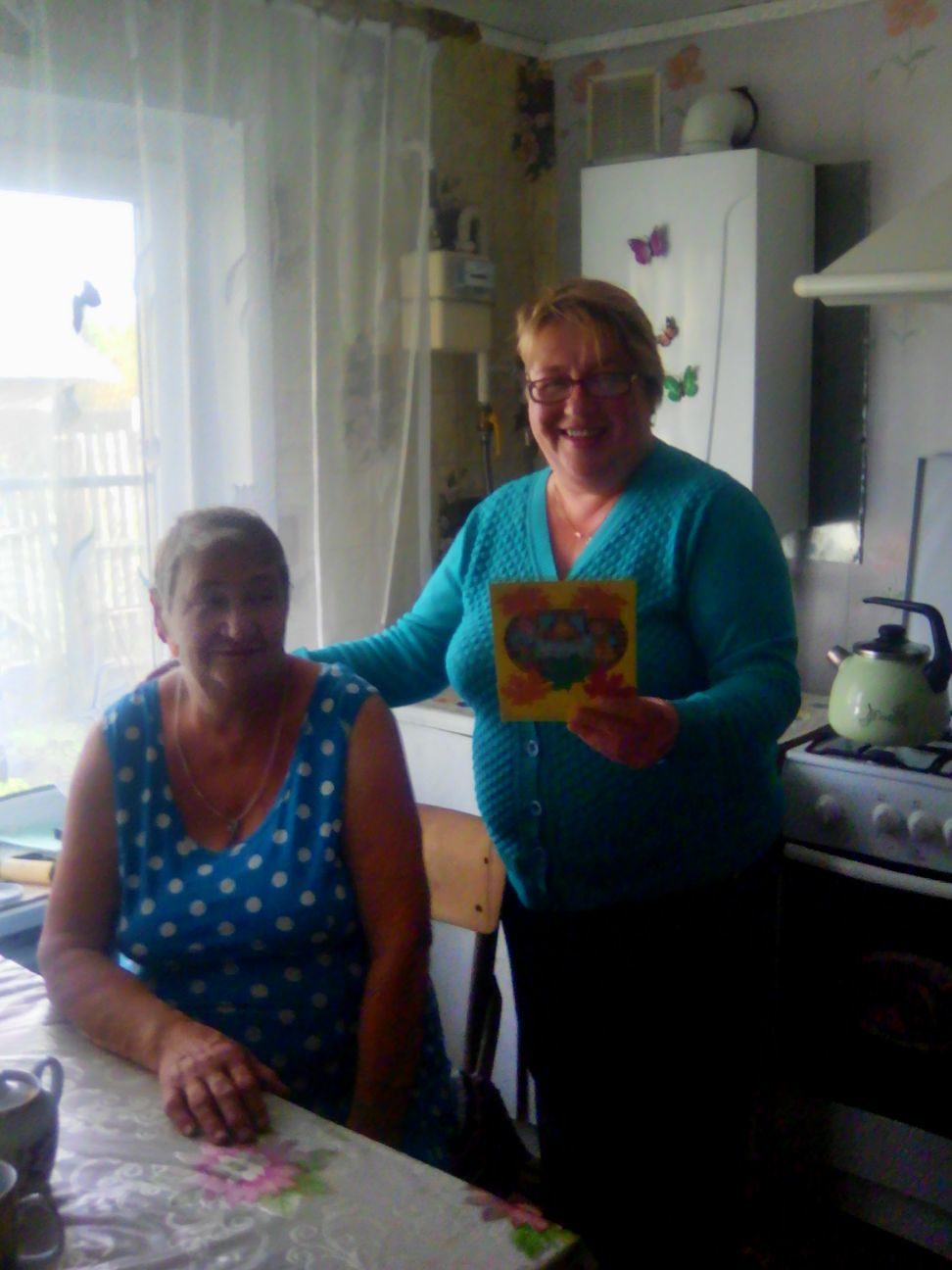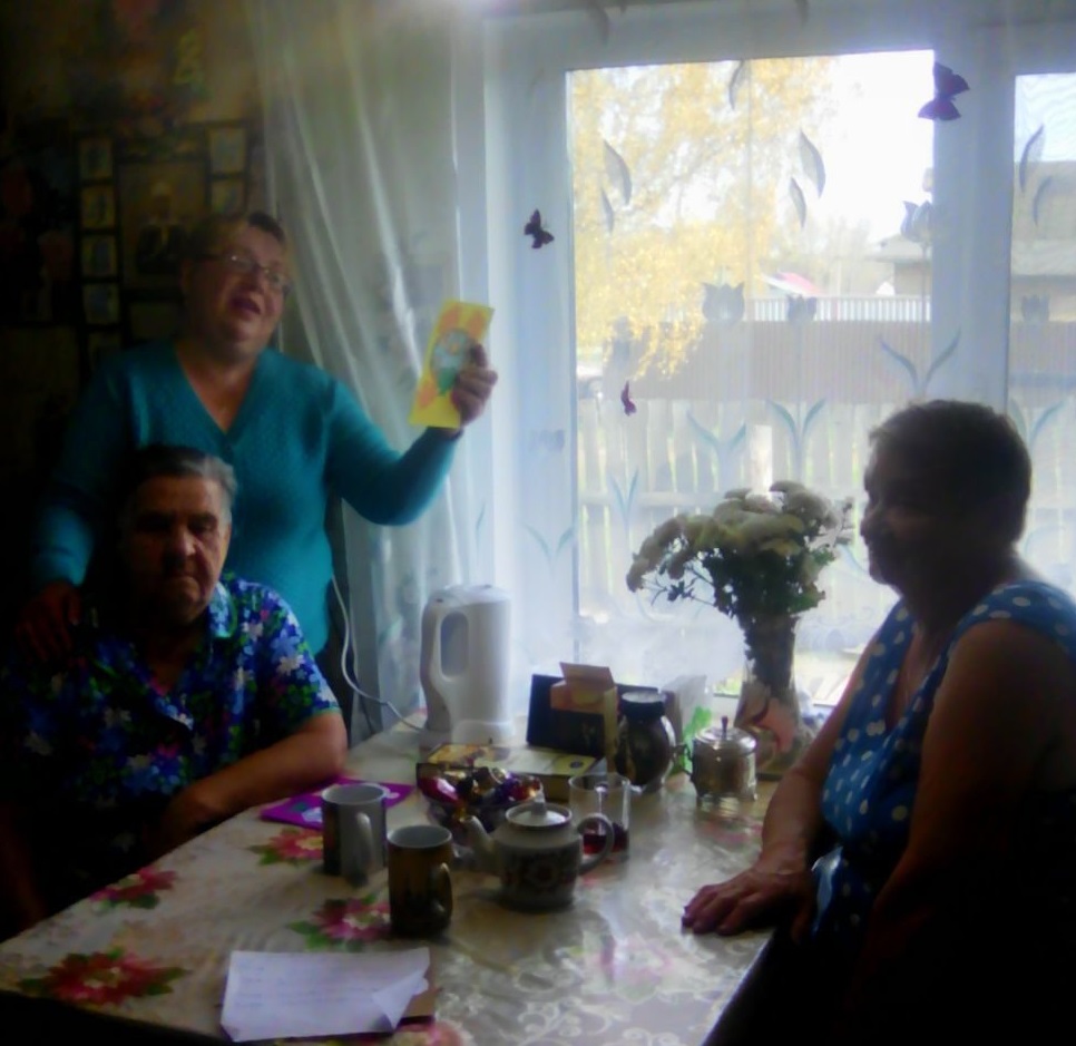 В первые дни октября в отделении социального обслуживания на дому традиционно проходит мини-клуб с участием получателей социальных услуг, посвященный замечательному празднику — Дню пожилого человека. Социальный работник, в веселой дружеской обстановке, поздравила присутствующих, вручила открытки, сделанные руками воспитанников стационарного отделения. Мероприятие сопровождалось песнями, душевными разговорами и угощением с горячим чаем.