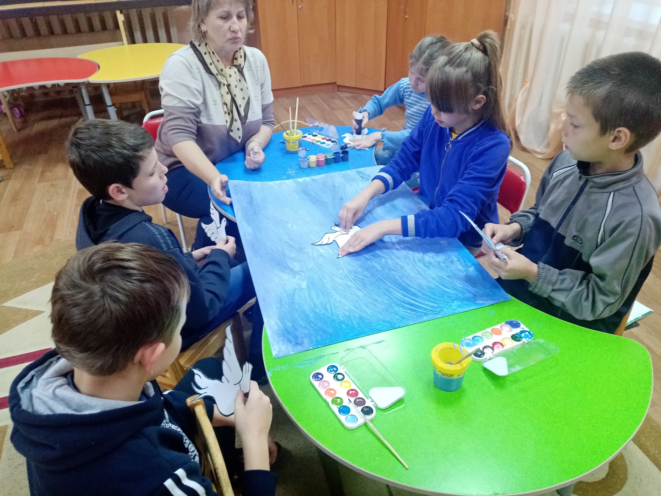 В рамках тематических мероприятий, посвященных Международному дню мира, воспитанники стационарного отделения Центра нарисовали мирное, голубое небо, в которое запустили символ мирного существования народов - голубя: