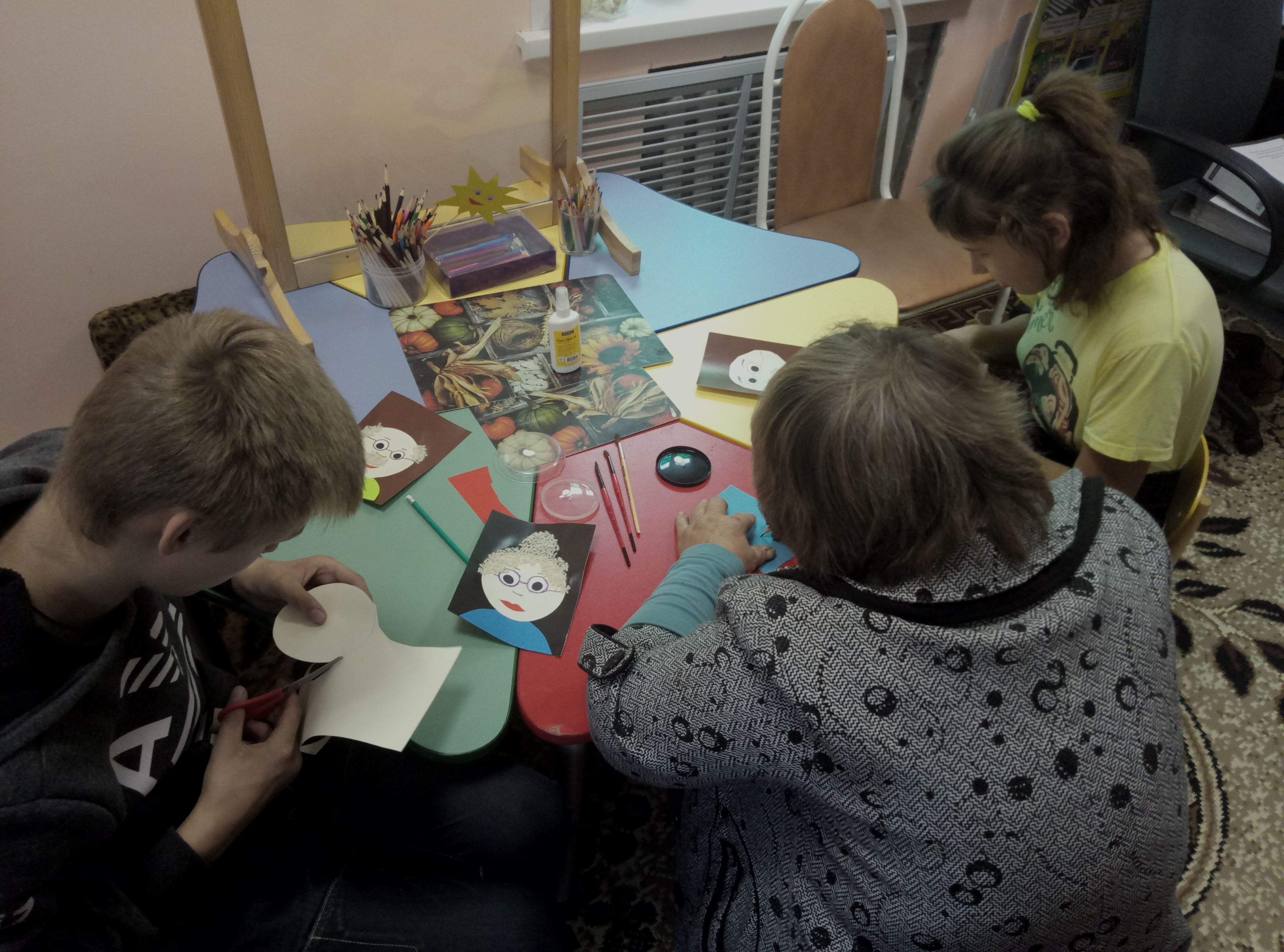 4 октября в отделении реабилитации детей с ограниченными возможностями здоровья в рамках плана работы детско – родительского клуба «Надежда» была открыта творческая мастерская по изготовлению поздравительной открытки для бабушек и дедушек.