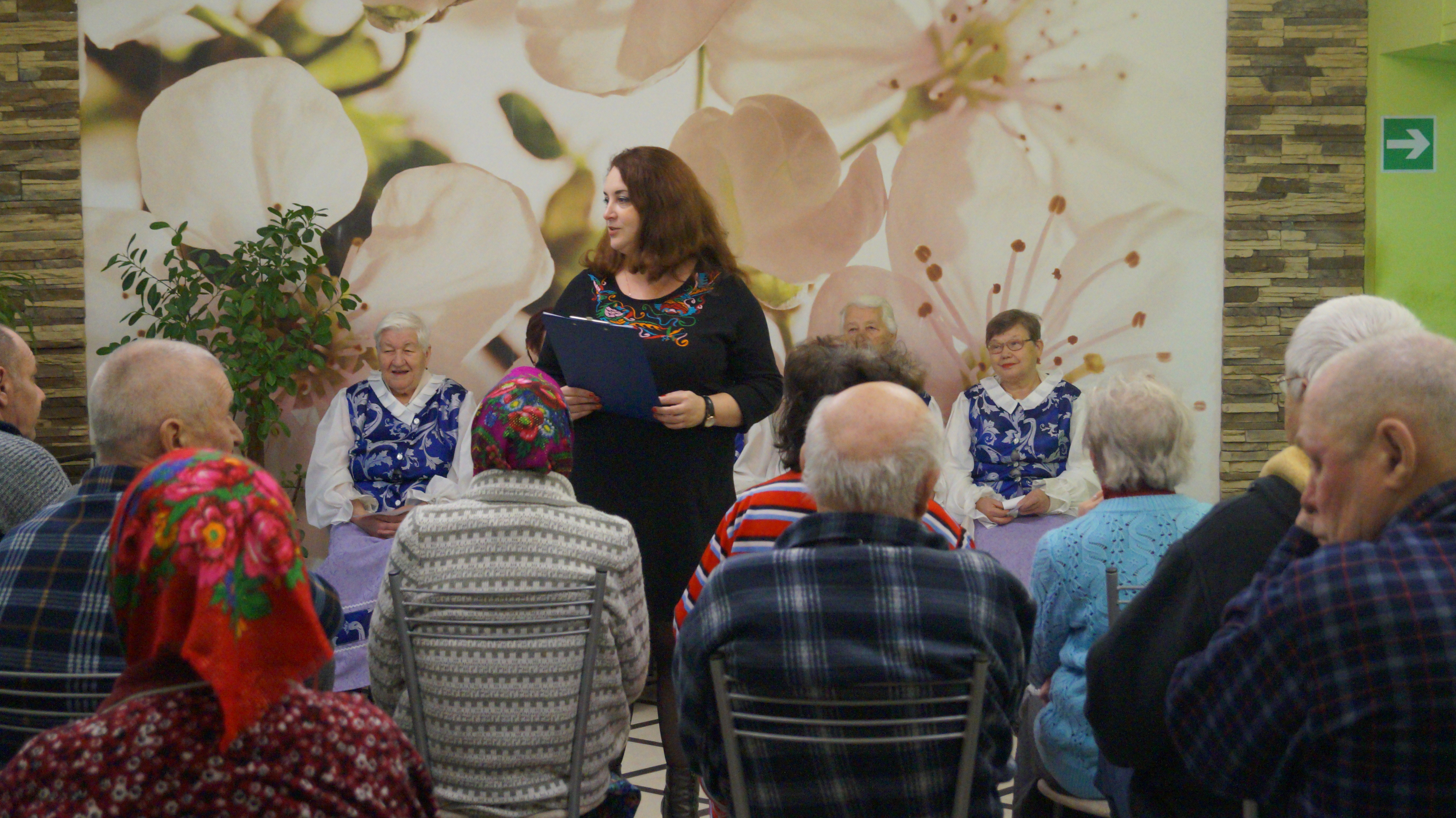 6 декабря в рамках районного плана к международному дню инвалидов в Новлянском доме - интернате отделение д. Переложниково клуб «С песней по жизни» провели досуговое мероприятие «Мы желаем счастья Вам». На встрече руководитель клуба - Оксана Михайловна М. провела викторины, участницы клуба исполняли песни и прочитали стих С.Ольгина «Вера, надежда, любовь».