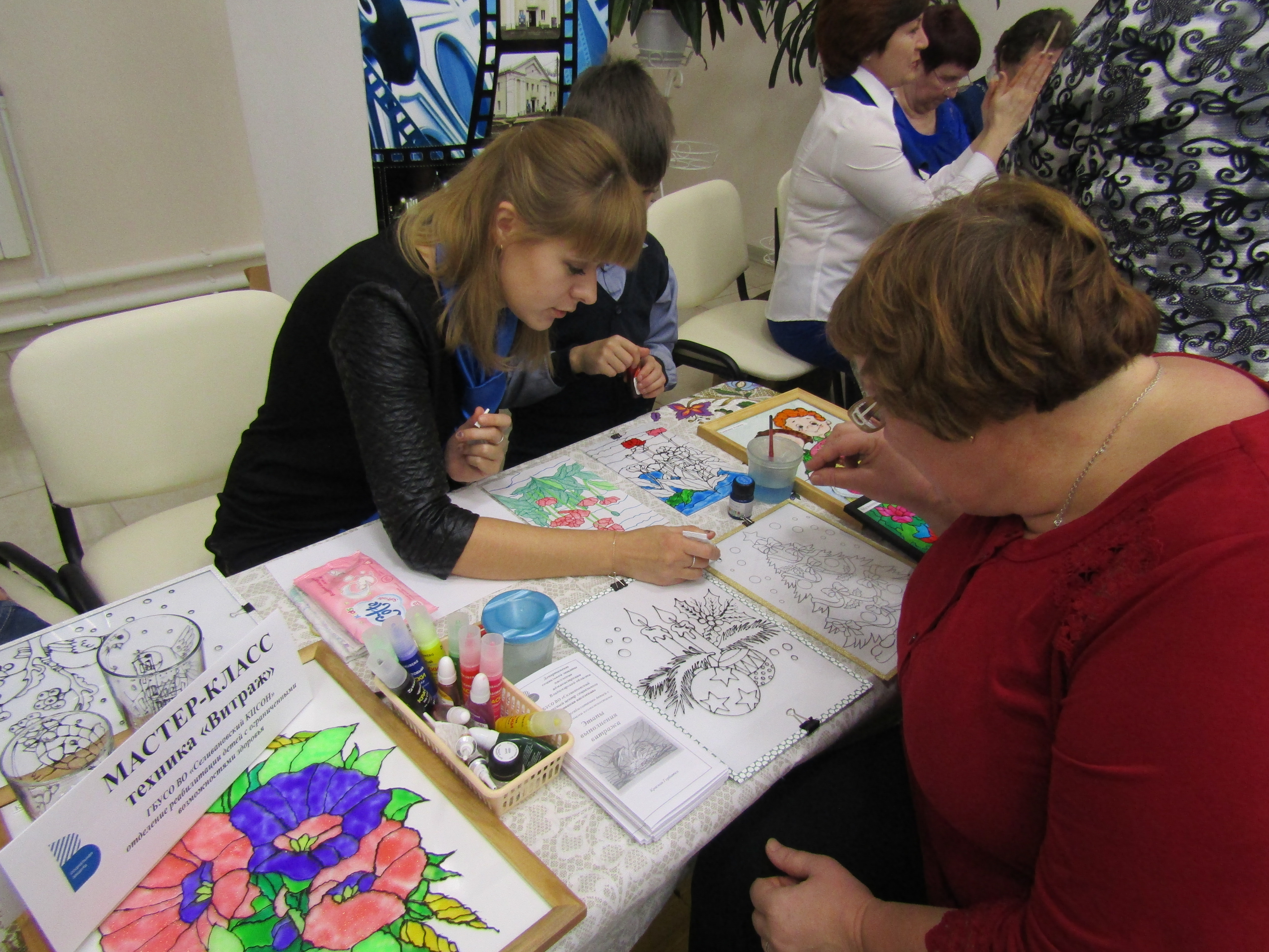 В холле была развернута выставка творческих работ, организованы мастер-классы людей с органиченными возможностями здоровья, в которых все желающие смогут поучаствовать. Работала выездная оптика плюс г. Владимир, мобильный медицинский центр, школа ухода за тяжелобольными людьми, консультационные пункты комплексного центра, отдела социальной защиты населения, центра занятости, пенсионного фонда.