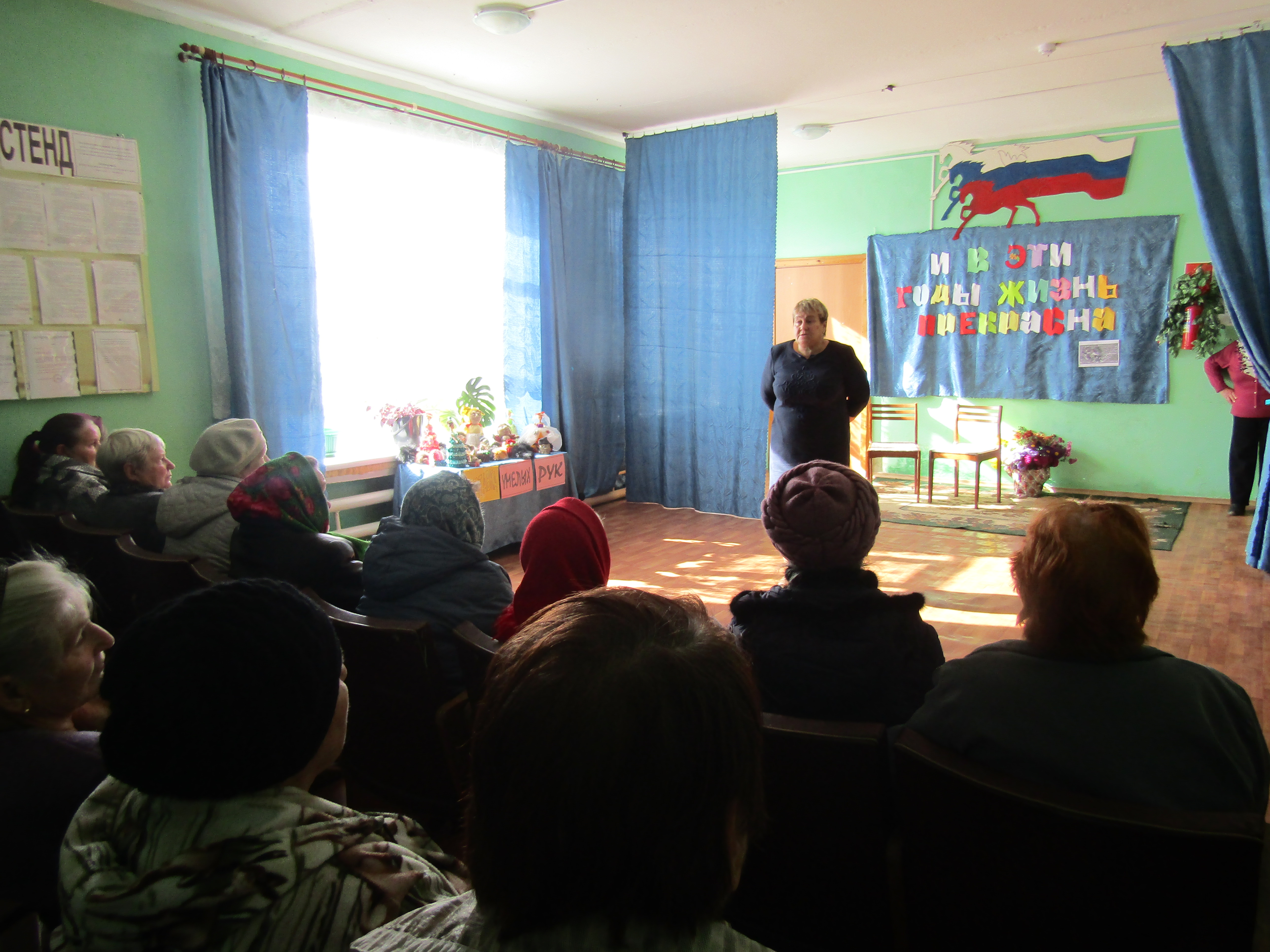 Открыла мероприятие глава администрации МОСП «Малышевское» Терехина И.В. Она поздравила пришедших с Днем пожилого человека и рассказала о долгожителях района.