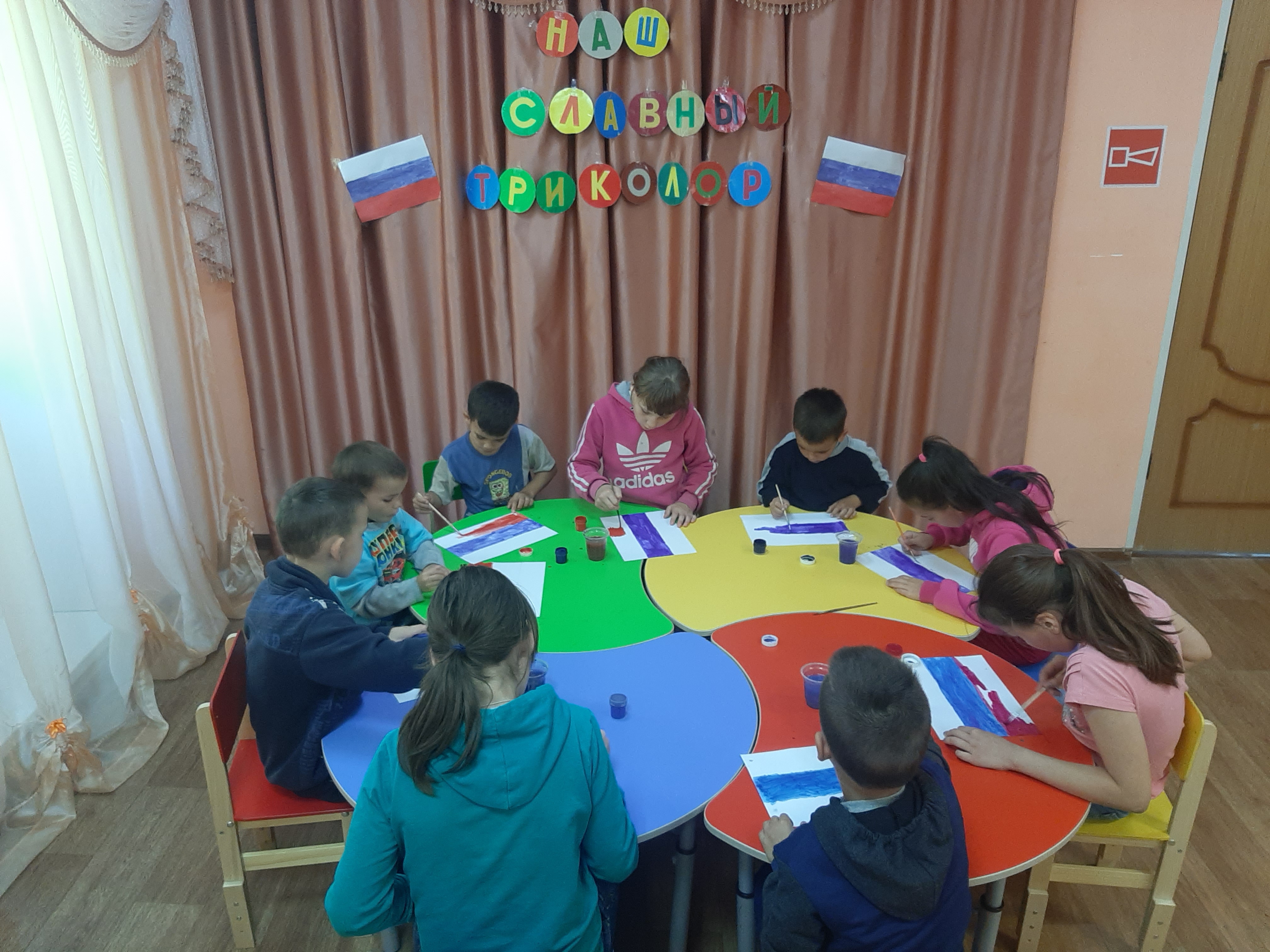 В этот день для воспитанников стационарного отделения Центра проведена тематическая программа «России славный триколор». Торжественно и гордо прозвучал гимн России в начале программы, дети с большим вниманием слушали. Затем ребята познакомились с историей флага; вспомнили, что означают цвета триколора; уточнили, когда и где вывешивается Государственный флаг; услышали интересные факты, связанные с флагом; поучаствовали в викторине; поиграли в игры.