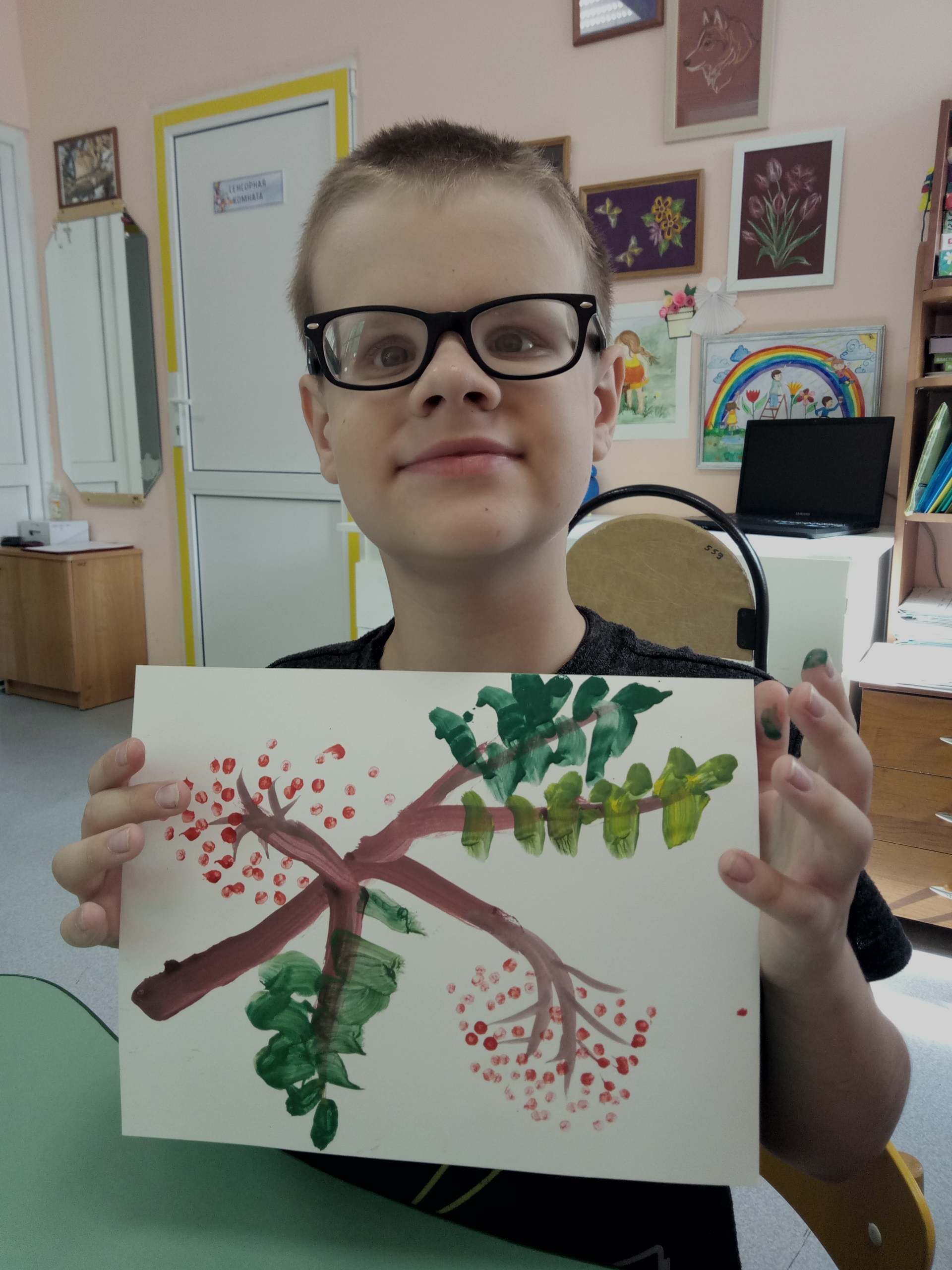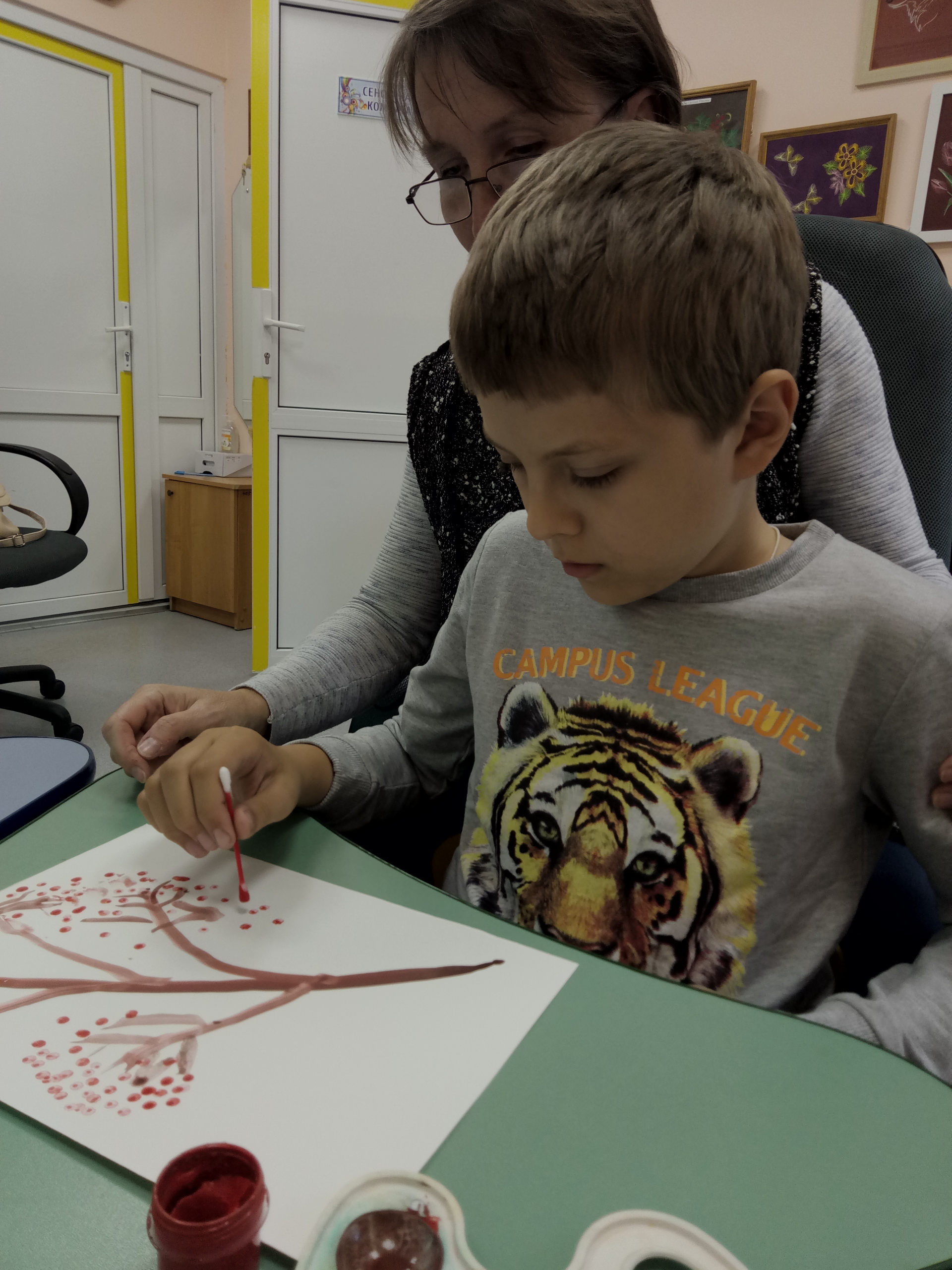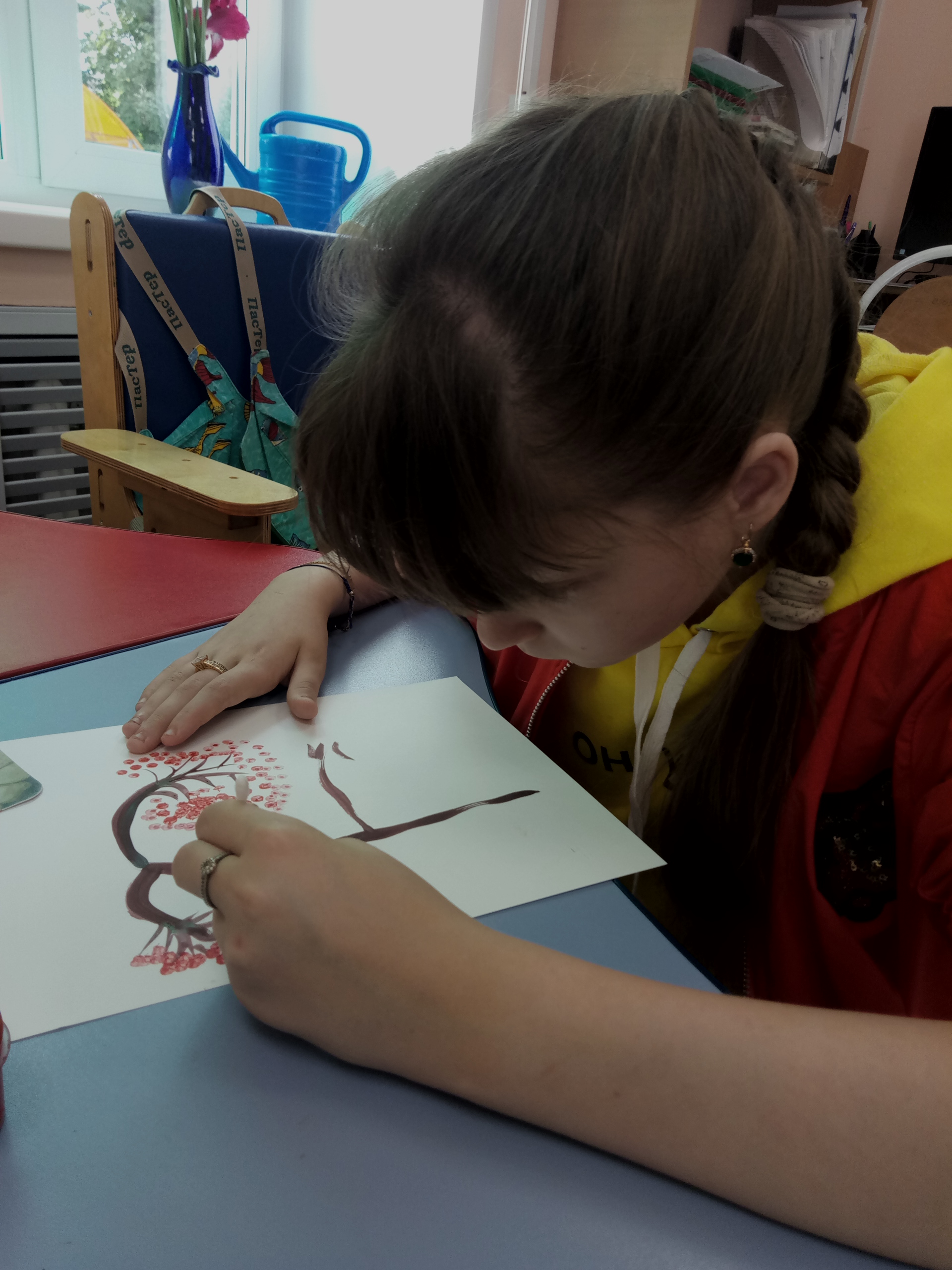 С 10 по 14 августа в отделении реабилитации детей с ограниченными возможностями прошли занятия с применением этого необычного для рисования предмета. Ребята рисовали веточку рябины, упражняясь в изображении ягод ватной палочкой.