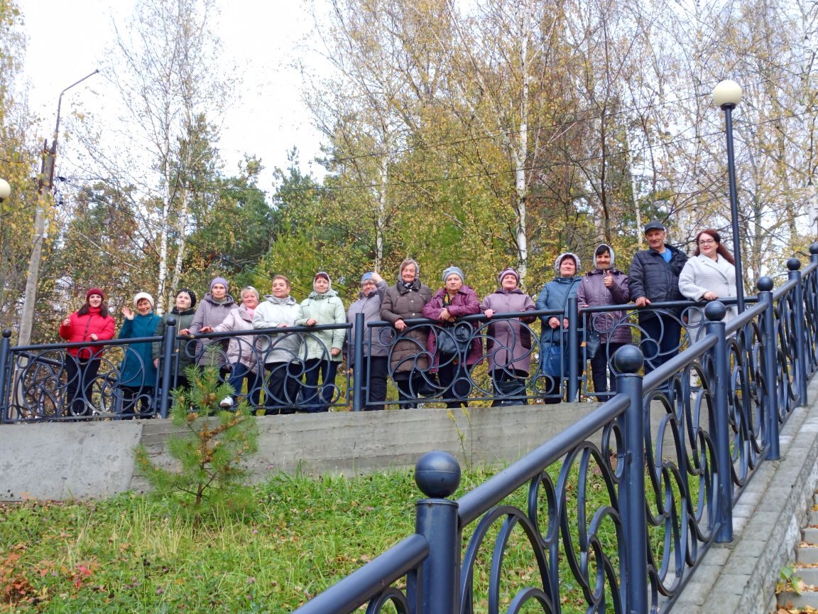 В благоустроенном парке участники мероприятия любовались зелеными топиарными фигурами, малыми архитектурными формами и береговой зоной реки «Колпь». После прогулки сотрудники отделения встречали гостей на базе учреждения. Заведующий отделением поприветствовал участников проекта и познакомил с услугами отделения. Рассказал о проводимых мероприятиях для сельских пенсионеров и предложил на выбор площадки для следующей встречи.