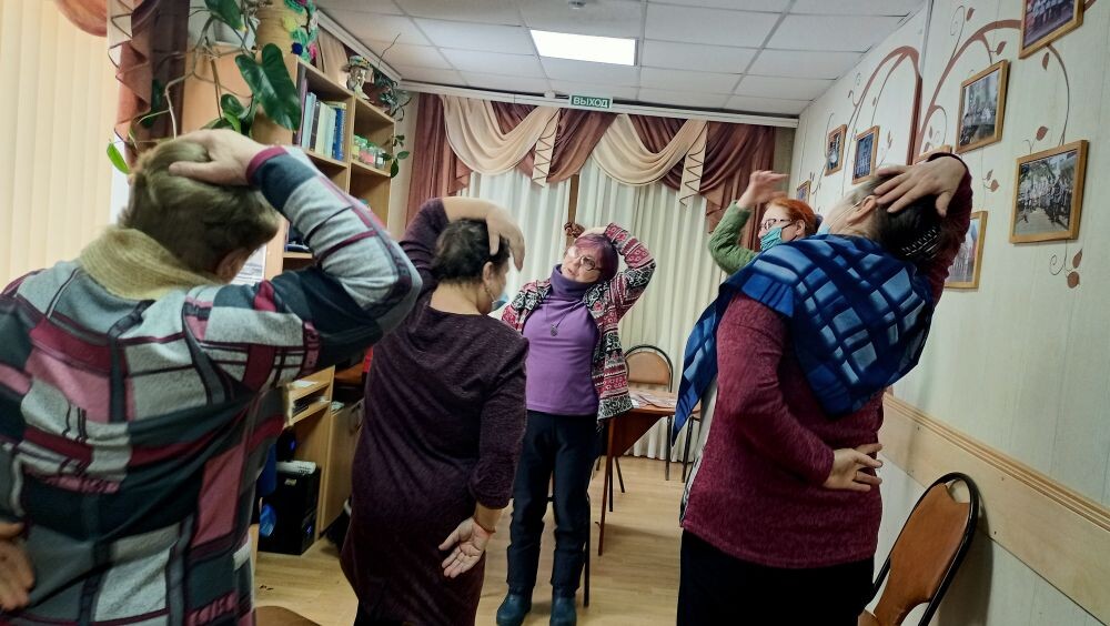На факультете «Активное долголетие» - Людмила Васильевна У. - «Серебряный волонтер», руководитель клуба «Здоровье ветеранов» при ФОКе, член президиума Совета ветеранов района, ответственный за организацию спортивно- массовой и оздоровительной работы среди ветеранов района, провела оздоровительную гимнастику для поддержания мышц и суставов.