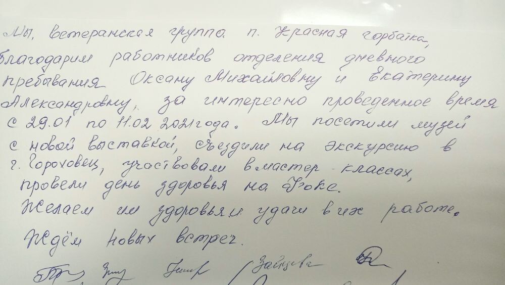 Получатели социальных услуг написали в книге отзывов благодарность и в ней такую фразу: «Ждем новых встреч».